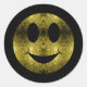 Sticker Rond Sparkly Smile face or jaune éclatant sur noir