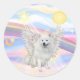 Un Eskimo Spitz américain essaie ses ailes parmi les nuages du ciel, avant d'entrer librement dans le Rainbow Bridge où anges et amis attendent.l