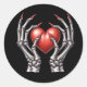 Sticker Rond Squelette mains tenant le coeur rouge