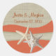Étiquette et bracelet look autocollant dans le corail océanique. Modifiez le texte pour répondre à vos besoins. Correspond à notre design mariage "Beach Amore Starfish", invitations.