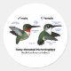 Ce design amusant présente notre colibri à gorge rubis original sous forme masculine et féminine. Les oiseaux sont montrés avec des statistiques comme la taille et des marques de champ pointues. C'est mignon pour tous ceux qui aiment les orgueil d'Archilochus, le colibri à gorge rubis !