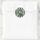 Sticker Rond Steampunk Clock and Turquoise Roses on Striped