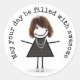 Sticker Rond Stick Figure Girl en Basket avec devis