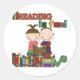 Un personnage en bâton garçon et fille, des livres, un ver de livre, et un texte qui dit "Lire est amusant!" sur le thème de la lecture T-shirts, tasses, cartes, autocollants, sacs fourre-tout, porte - clés, boutons, magnets, ornements, et d'autres choses qui conviennent à tous ceux qui aiment lire et les livres!
