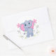 Cet autocollant rond est montré en blanc avec un joli éléphant et des fleurs roses imprimé. Customisez cet objet ou achetez tel quel.