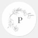 Sticker Rond Sticule de monogramme de couronne florale noire et