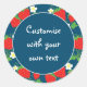 Sticker Rond Strawberries and Flowers Blue Custom Text