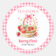 Sticker Rond Strawberries hearts,pink bow Berry First Birthday
