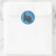 Sticker Rond Stretching Black Cat on Blue Custom Name