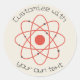 Autocollants ronds personnalisés avec texte courbé et structure d'atome, idéal pour tout événement scientifique.