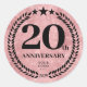 stickers ronds style parties scintillant rose 20e anniversaire avec un logo d'entreprise. Design décoratif avec une branche de laurier et des étoiles. Le logo peut être modifié en texte en cliquant sur le bouton pour modifier la conception.