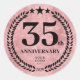 stickers ronds de style parties scintillant rose à 35ème anniversaire avec un logo d'entreprise. Design décoratif avec une branche de laurier et des étoiles. Le logo peut être modifié en texte en cliquant sur le bouton pour modifier la conception.