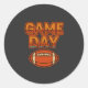 Un design audacieux d'inspiration rétro "GAME DAY" avec une typographie les années 70 nostalgique et des lettres rayées, avec une illustration de football pour un look de retour classique.