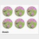 Sticker Rond Succulent rose chaud avec Feuilles vert chair