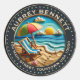Sticker Rond Sun & Surf Beach Clay Look Art Nom et adresse