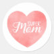Sticker Rond Super Maman texte dans le coeur rose peint