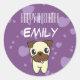 Sticker Rond Super mignon Carlin Purple Coeur Design