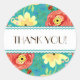 Il s'agit d'un autocollant de Merci correspondant à l'ensemble de faire-part de mariage du même nom. PALETTE DE COULEUR : turquoise, bleu turquoise, corail, rouge, jaune, orange et vert citron avec une touche de chocolat. COLLECTION DESIGN : Correspondance Merci Notes, Cartes de notes. Créé à partir d'une aquarelle originale peinte à la main par Audrey Jeanne Roberts, ce design floral moderne et imaginatif allie les couleurs à la mode. Ranunculus, fleurs en forme de cercle avec divers éléments de fleurs fantaisistes, mignons, stylistiquement crées sont jetés sur la couleur arrière - plan. Certaines ressemblent à des roses sauvages, des baies et des marguerites aux feuilles à la fougère. Un cadre de style crochet a des pois et une bordure de type tourbillon de calligraphie. Il y a une large gamme de combinaisons de couleurs disponibles avec ce motif.