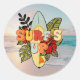 Sticker Rond Surf d'été fleurs de plage et feuilles tropicales