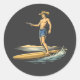 Sticker Rond Surfing Cowboy