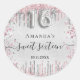 Sticker Rond Sweet 16 anniversaire argent rose parties scintill