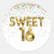 Gold doux 16 ballons et confetti coloré sur arrière - plan blanc pour la fête Sweet 16 anniversaire. La couleur Arrière - plan peut être modifiée.