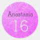 Un autocollant doux de 16 ronds avec une parties scintillant violet glam brille l'arrière - plan et l'écriture noir et blanc. Vous pouvez le personnaliser avec votre nom et changer le numéro pour l'âge de l'anniversaire. Vous pouvez même modifier la couleur du texte et le style de police à l'aide de l'option personnaliser.