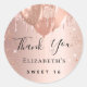 Un autocollant pour une fête de 16 ans Sweet 16, 16e anniversaire, girly et glamour. Un arrière - plan de couleur or rose et roux avec de la poussière de parties scintillant et des ballons. Le texte : Merci est écrit avec un grand script de style à la main moderne. Personnalisez et ajoutez un nom.