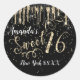 Sticker Rond Sweet 16e Party Gold Confetti Drips Noir Blanc