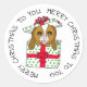 Sticker Rond Sweet Chien de Chien en boîte cadeau de Noël avec