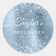 Créez votre propre Sweet 16 ou 16ème anniversaire de fête de préférence autocollants. Fille fausse parties scintillant bleu brillant sur une fausse feuille de style métallique bleu clair. Customisez la couleur blanche et les styles de police pour créer votre propre design autocollant de faveur pour sa célébration spéciale. Une calligraphie classique et élégante associée à une police serif casquette.