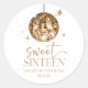 Sticker Rond Sweet sixteen Gold Disco Ball 16e fête d'anniversa