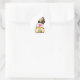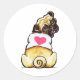 Illustration du sujet de l'encre originale et des crayons colorés d'Andie montrant un Carlin faun masqué foncé portant un minuscule tee au coeur rose. c)2014 Andie.