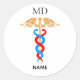 Sticker Rond Symbole de Caduceus et monogramme de Docteur Médic