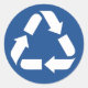 Sticker Rond Symbole de recyclage blanc sur arrière - plan bleu