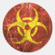 Cette conception rayée et usée comporte le symbole de danger biologique pour les substances biologiques dangereuses et dangereuses. Le symbole international de l'avertissement se compose de trois cercles ouverts qui se croisent et d'un quatrième cercle placé derrière eux. Cette conception agressive est un symbole populaire qui a été associé dans la culture pop avec l'apocalypse zombie et l'infection de masse.
