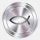 Un bel autocollant Christian Poisson Symbole argent - vient aussi en or. Magnets correspondants et montres bracelets disponibles. Pour toute question ou demande personnalisée, contactez cheryl@cheryldanielsart.com.