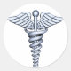 Symbole Médicale d'argent et logo des médecins. Deux serpents d'argent serpentent autour d'un personnel ailé pour créer le symbole médical et médical international. Illustration originale et modèle 3d par Michael Kingery de MyArtistTree.com