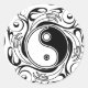 Sticker Rond Symbole Yin et Yang Style tatouage noir et blanc