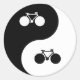 Le signe d'équilibre zen yin-yang avec un vélo noir dans la moitié blanche, et un vélo blanc dans le noir. Le vélo est bon pour le corps et l'esprit