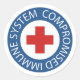 Autocollant du système immunitaire compromis en rouge, blanc et bleu avec des polices modernes et une croix rouge.