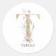 Lettre T monogramme floral. Lettre T en texture brun doré accentué de feuilles verts composés d'aquarelle, fleurs de fleurs et poussière d'or. Personnalisé avec nom dans la police correspondante.