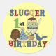 Le petit cogneur aimera ce premier T-shirts d'anniversaire de thème mignon de base-ball, combinaisons, cartes, autocollants, sacs fourre-tout, ou tout autre article !