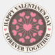 Un autocollant accrocheur de Saint Valentin avec le texte circulaire "Heureuse Sainte-Valentin Forever Together" entourant un éventail de coeurs roses. La palette de couleurs moderne est blanc ivoire, marron chocolat et rose bubblegum.