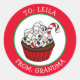 Joli cupcake de Noël dessiné à la main avec des arrosages et du sucre de canne personnalisé à et de l'autocollant de marque cadeau.