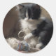 Sticker Rond Tangup Dans Fun Black and White Kitten
