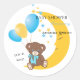 Sticker Rond Teddy Bear assis sur la Lune | Baby Boy Shower