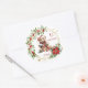Sticker Rond Teddy Bear Foliage Poinsettia Bébé 1er Noël