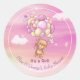 Sticker Rond Teddy Ours rose Ballons Baby shower fille
