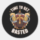 Sticker Rond Temps To Get Basted Funny Beer Thanksgiving Turkey